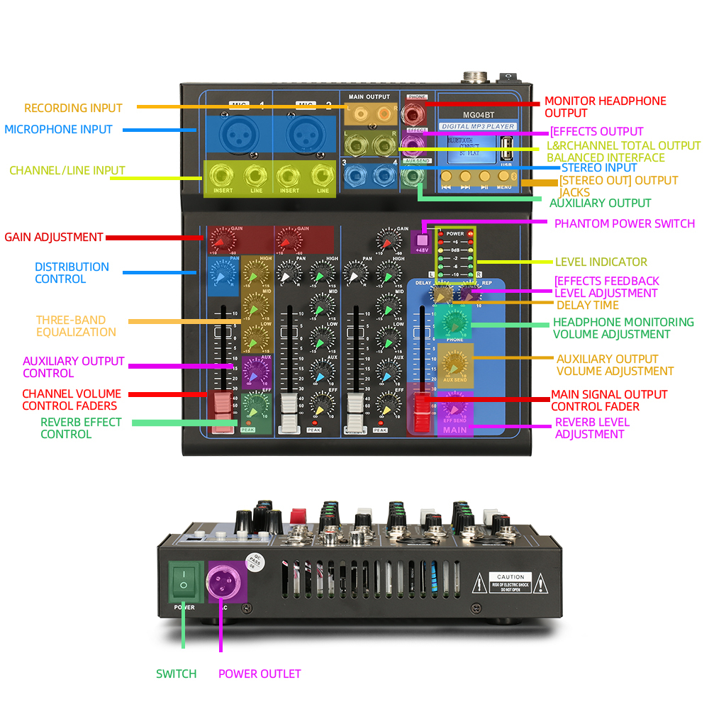 AUDIO MIXER mixer profesional 4-channe MG04BT mixer Penguat sinyal USB Penguat KTV Penguat kinerja panggungPenguat SBLUE