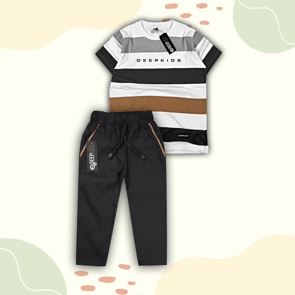 Setelan Anak Laki Laki Kaos Distro Salur & Celana Chinos Panjang Usia 1-12 Tahun Premium | Set PRS Chino Pjg