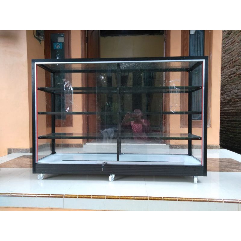 ETALASE toko kaca 1.5 MTR / etalase warung kaca full 4 mm lemari kaca alumunium display warna silver dan coklat / Etalas