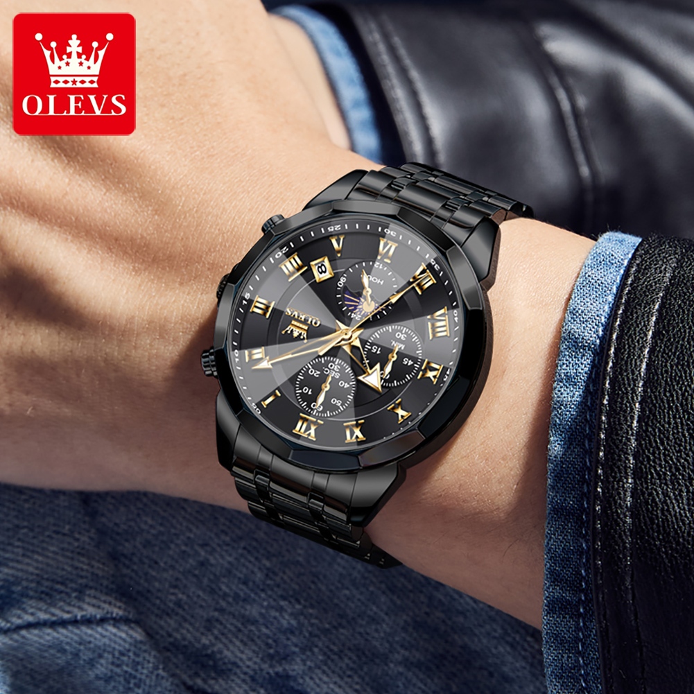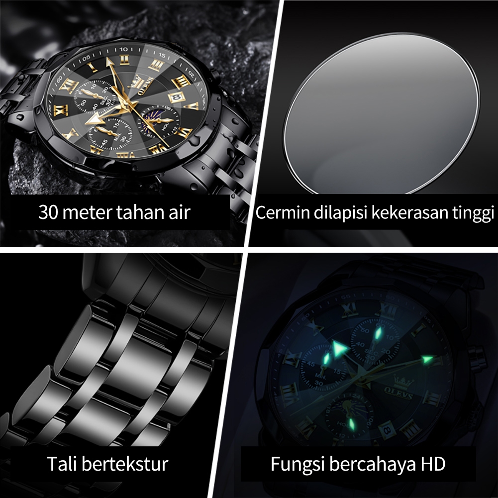 OLEVS Jam Tangan Pria Anti Air Original Stainless Steel Terbaru Luminous Kalender Men Watch 3675