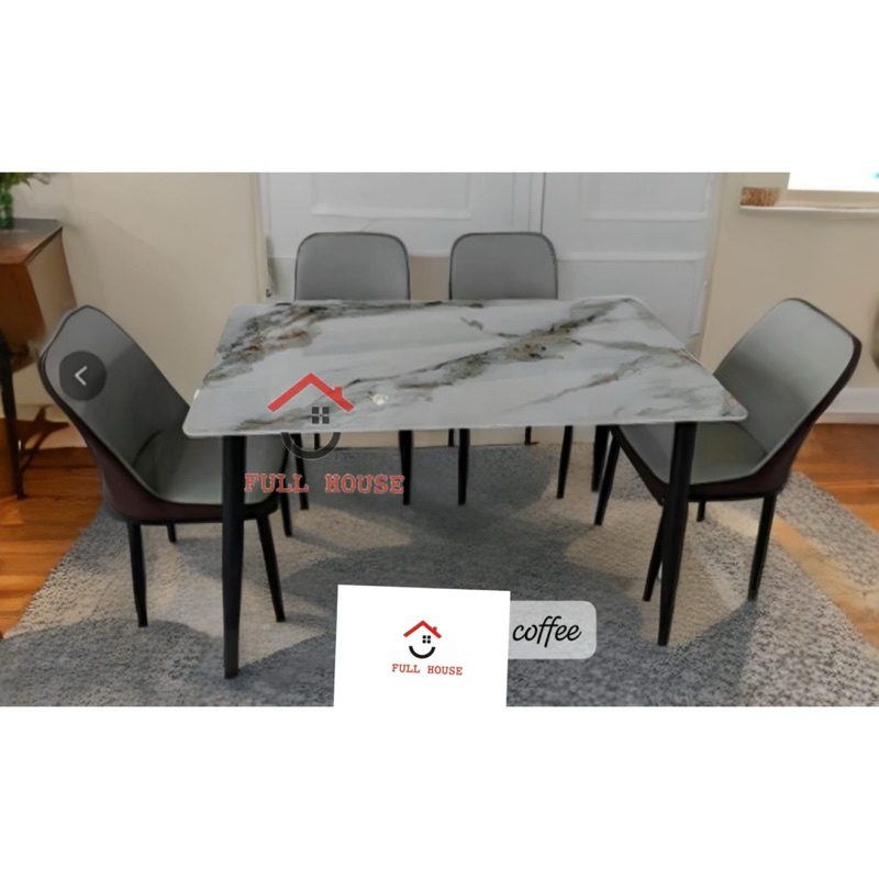 Set Meja Makan 4 Kursi Neolith Marmer Rangka Besi Top Quality Impor Termurah