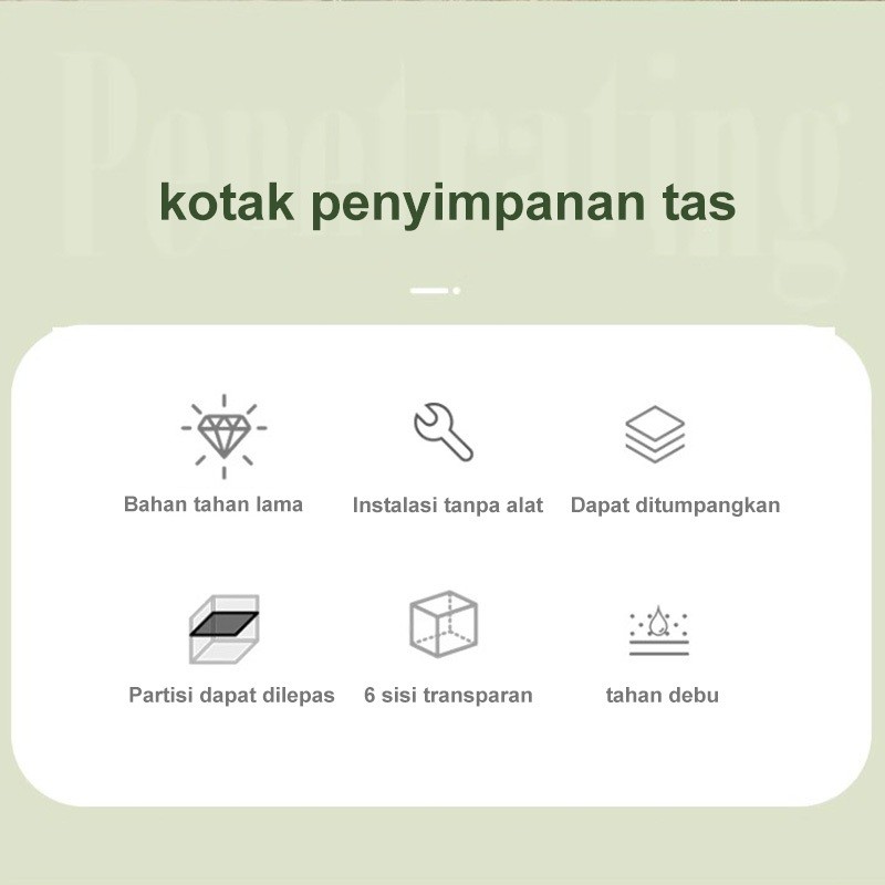 AKEA Pengatur Tas Lemari Penyimpanan Debu rak tas Serbaguna Kabinet Plastik Penyimpanan