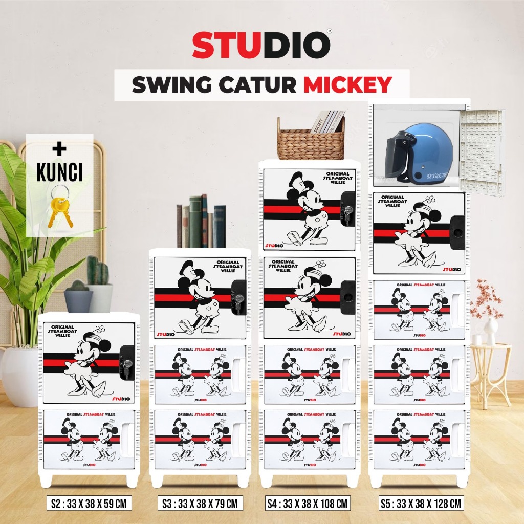 STUDIO - Lemari Pakaian Plastik Swing Catur Mix 1 Pintu Motif Mickey Mouse Susun 2, 3, 4, dan 5