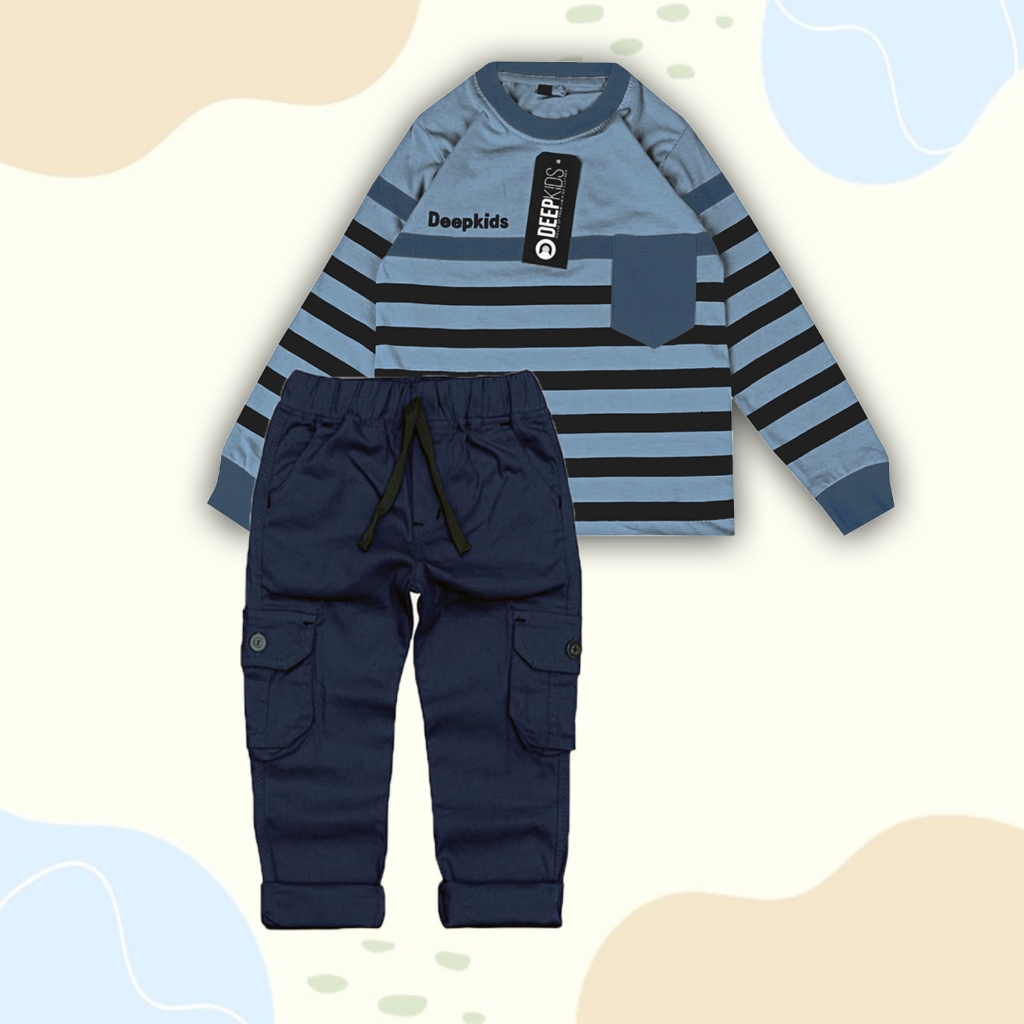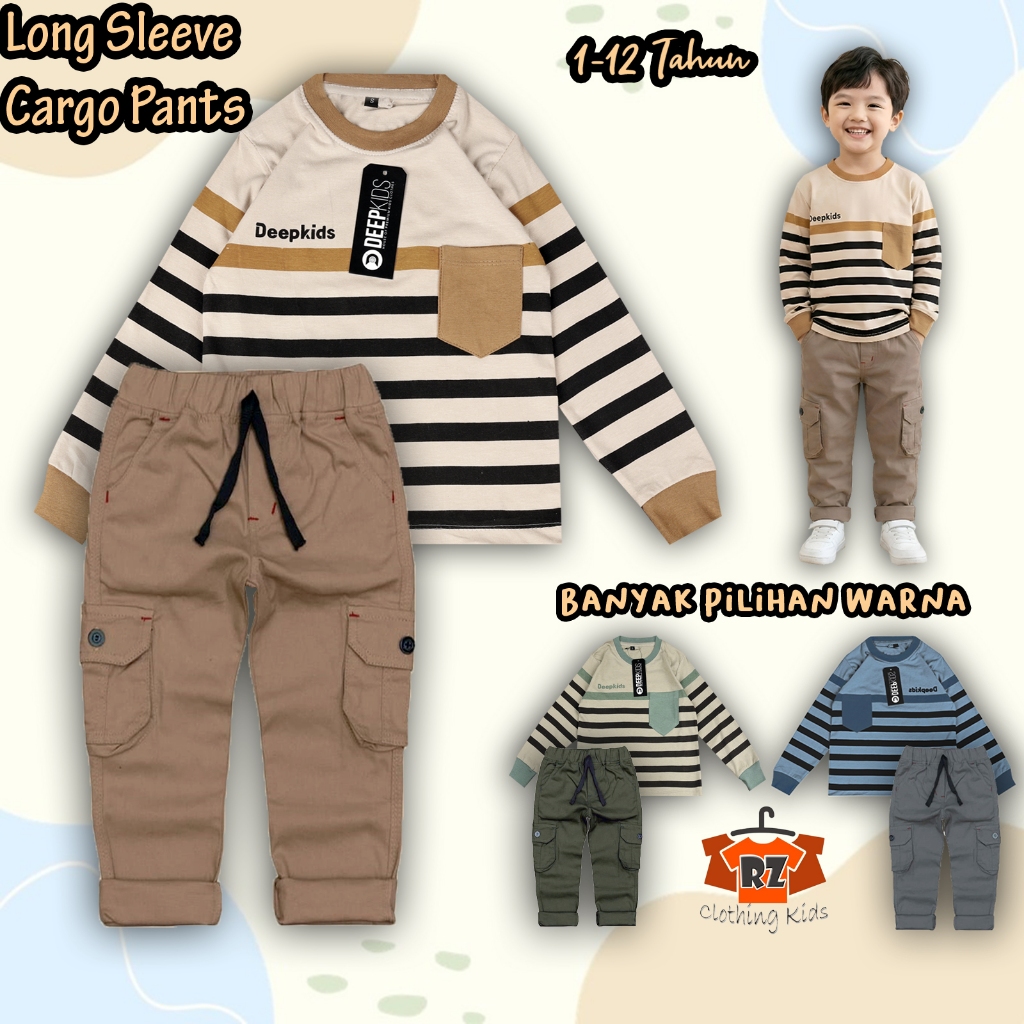 Setelan Anak Laki-Laki Kaos Tangan Panjang & Celana Cargo Panjang Premium Usia 1 2 3 4 5 7 8 9 10 11 12 Tahun | Set TPGS