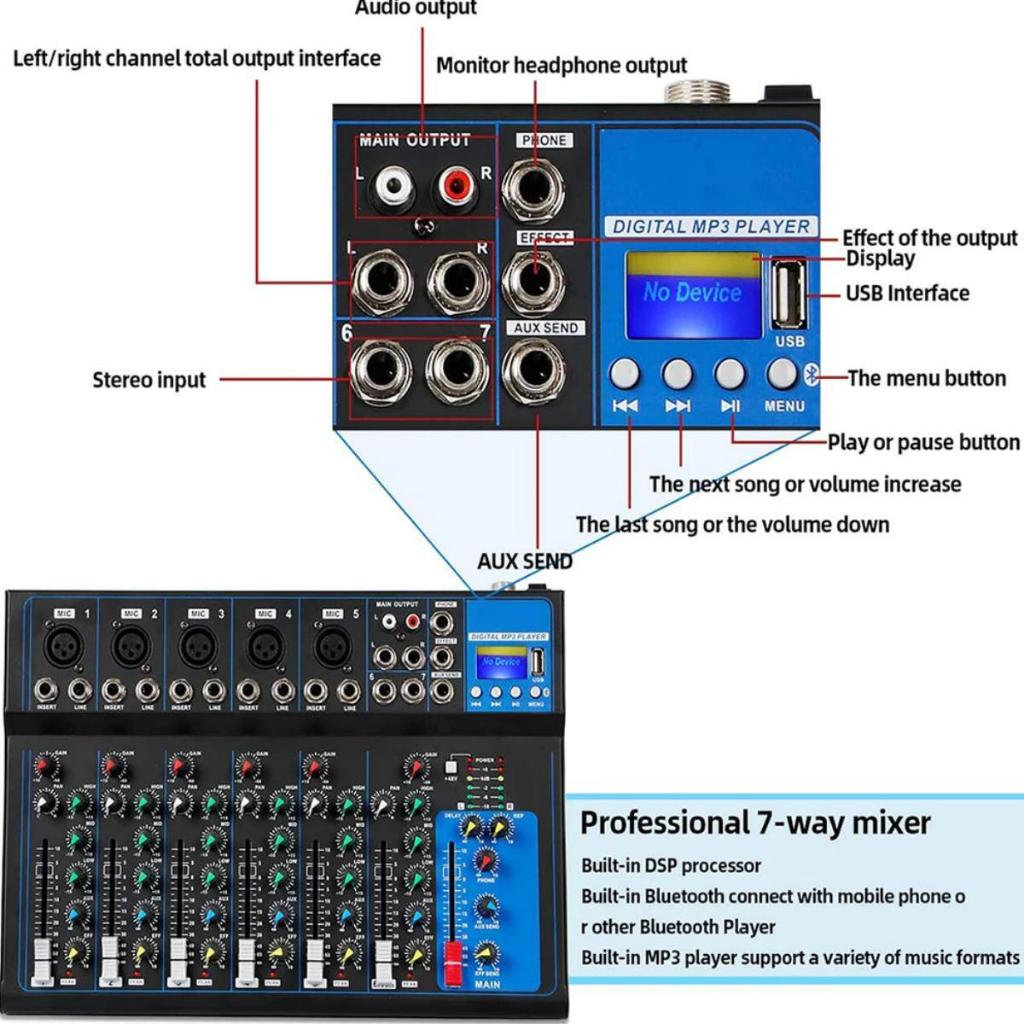 MOREFAND F4/F7-BT Professional Audio Mixer 4/7-channel built-in EQ/recording Suport bluetooth USB mikser audio ashlley 4