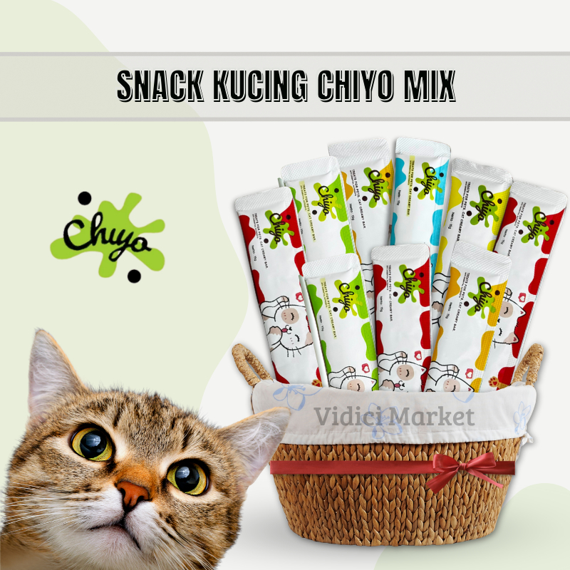 Chiyo Mix Snack Kucing Creamy/ Cat Strip Chiyo Mix/ Snack Kucing Creamy 15GR Snack Kucing Camilan Kucing Makanan Hewan
