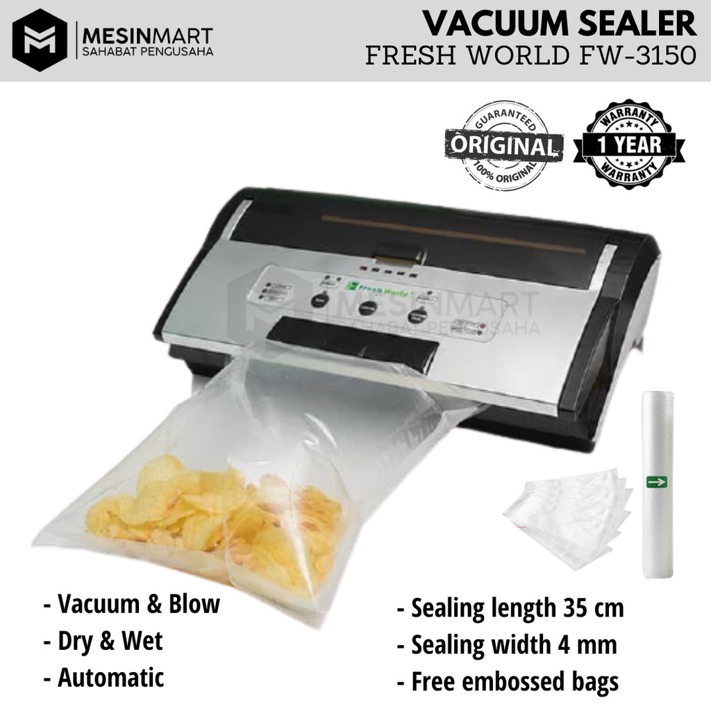Vacuum Sealer/ Pengkuning mengkilap Vakum FRESH WORLD FW-3150 (Bisa Basah & Tiup)