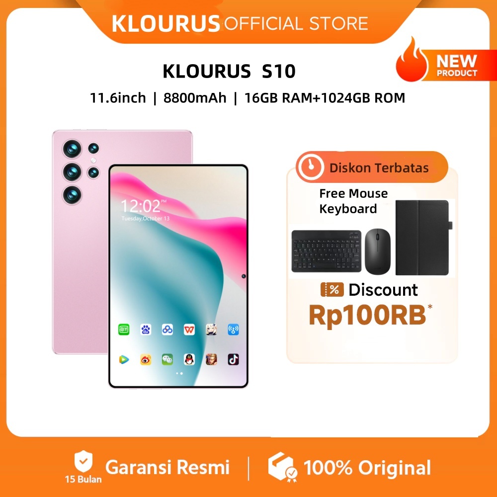 KLOURUS Tablet S10 | IPS 11.6" | Tablet Murah untuk Belajar,Gaming, Kerja & Hiburan | 5G Dual SIM, WiFi Tablet Anak A