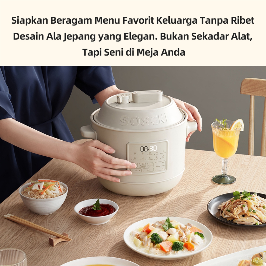 Soseki Panci Presto Listrik 1.2L / Electric Pressure Cooker Multifungsi 10 Menu Masak / Lepas Tekanan Otomatis Dengan Su