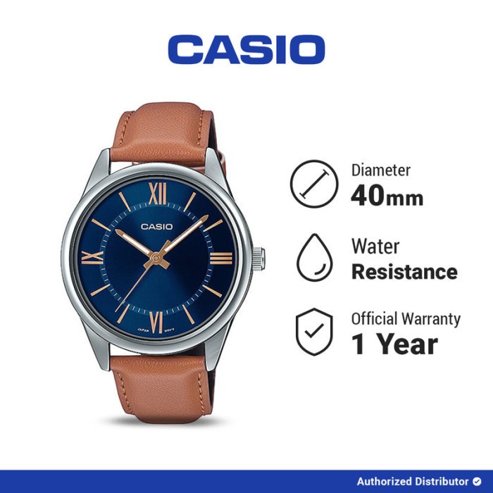 Casio Jam Tangan Pria MTP-V005L-2B5UDF Analog Blue Original