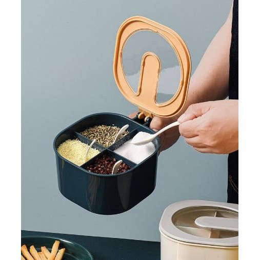 Tempat Bumbu Dapur 4IN1 Free Sendok Rak Seasoning Box 4 Sekat Kotak Wadah Toples Praktis Kitchen