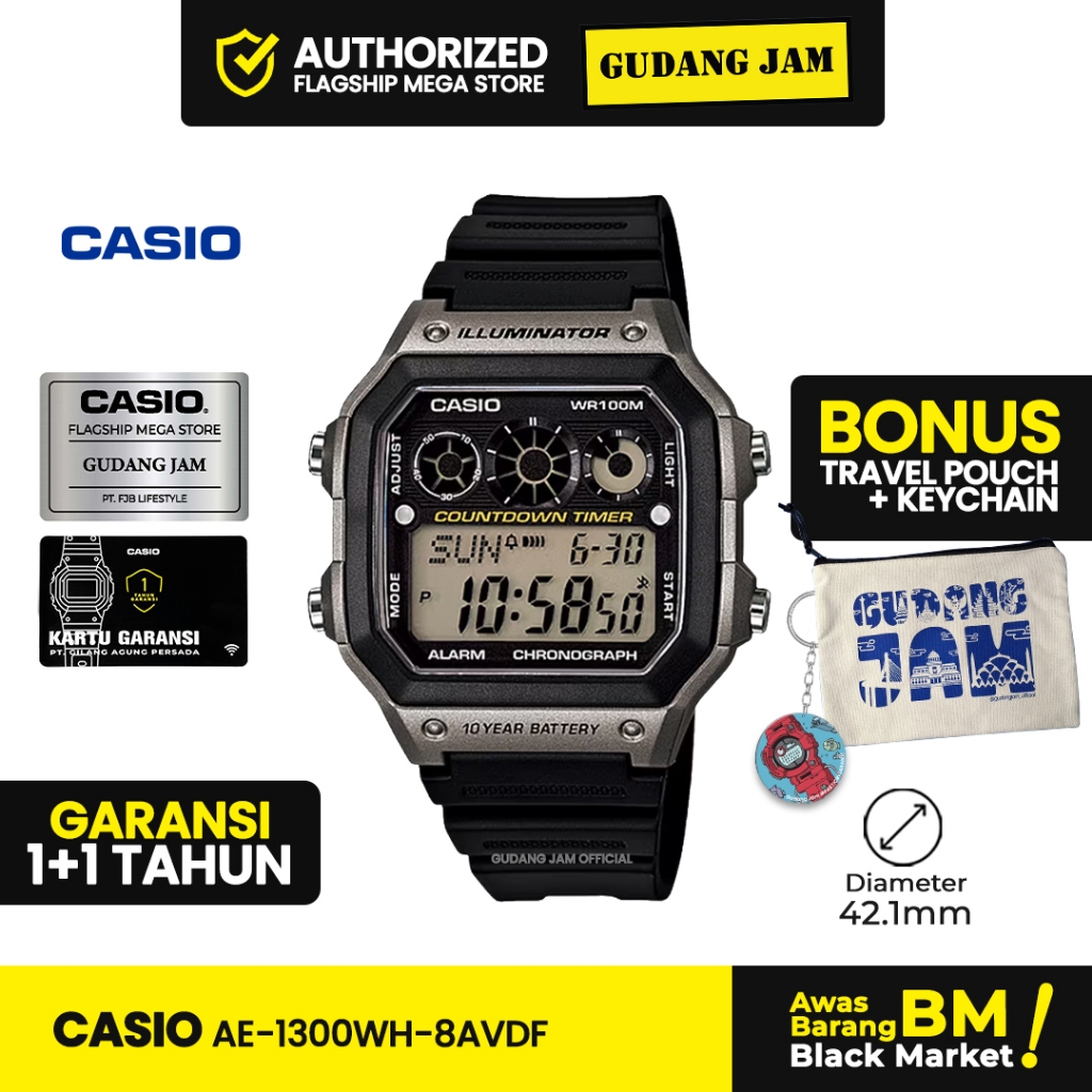Jam Tangan Casio Original AE-1300WH-8AVDF Illuminator Black Resin Band