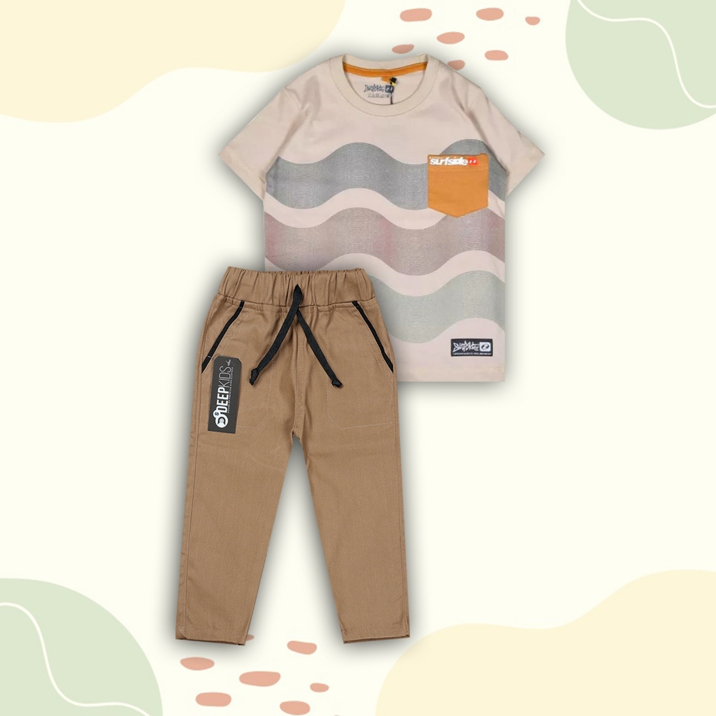 Setelan Anak Laki Laki Kaos & Celana Chinos Panjang Usia 1-12 Tahun Set Pastel Chinos Panjang