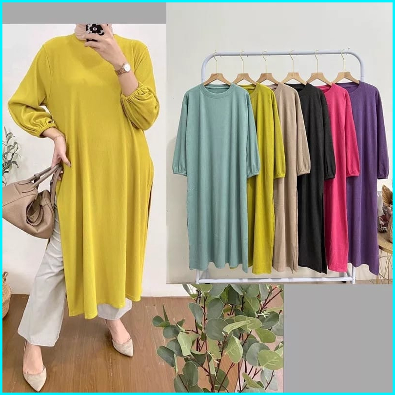 Brnj Tunik Knit Rajut Premium Atasan Wanita Muslimah Terbaru