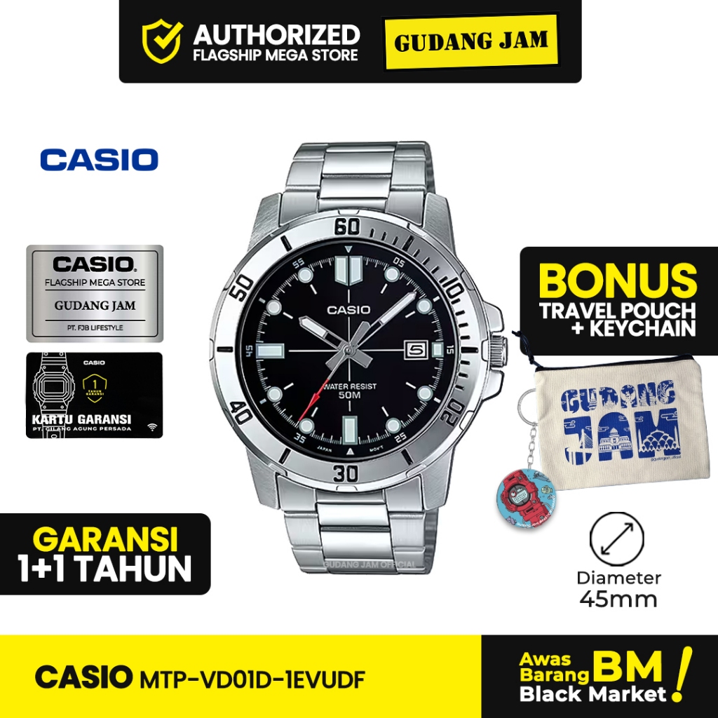 Jam Tangan Pria Casio MTP-VD01D-1EVUDF Black Dial Stainless Steel Band