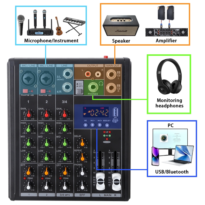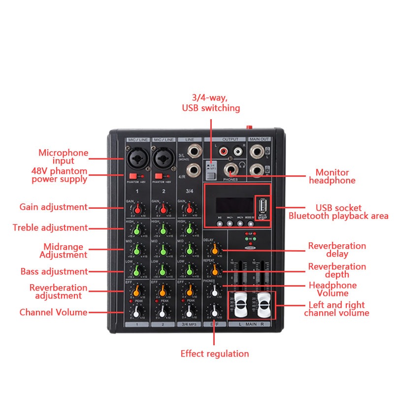 Feichi 4 Channel Mixer audio/mixer mini/Sound Card/Amplifier Bluetooth Mini profesional /Soundcard USB mikser audio