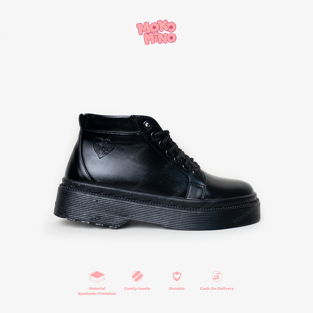 Mokomino - Sepatu High Boots Formal Wanita 7 Hole Warna Hitam