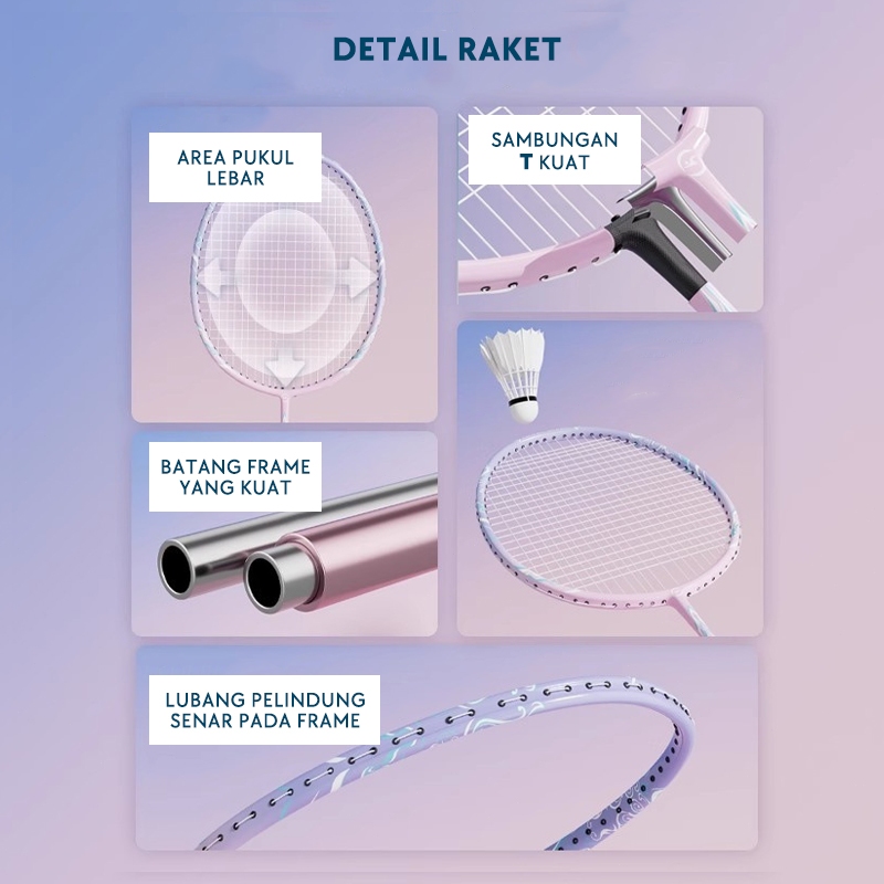 RAKET BADMINTON ISI 2 FREE BAG+KOK BULUTANGKIS / 3 PCS SHUTTLECOCK | Raket Couple Pink Blue | Raket Bulu Tangkis Wanita