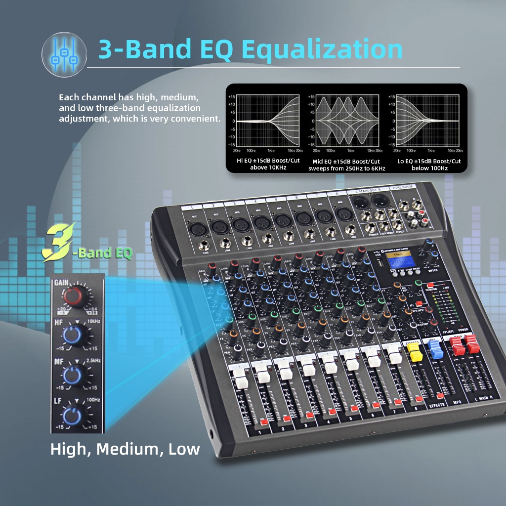CT Series Mixer Professional Channel AUDIO MIXER XLR OUTPUT BLUETOOTH,USB,RECORD,SOUND CARDREVERB Mixer audio saluran