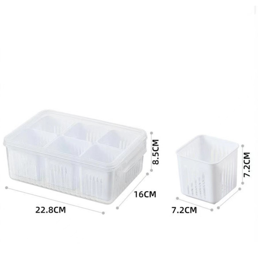 6 Sekat Kotak Penyimpanan Bumbu Dapur Wadah Cabai Bawang Kotak Bumbu Dapur dengan tirisan dan Sekat / Kotak saringan wad