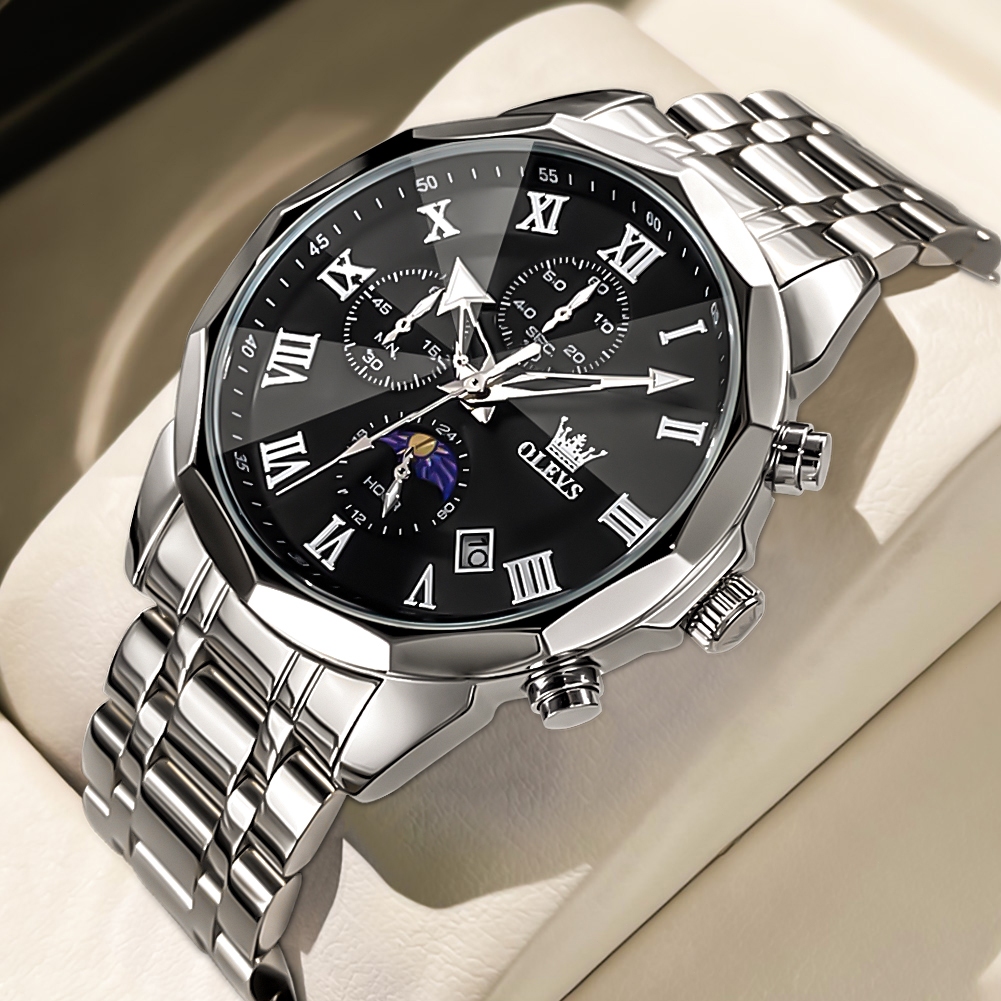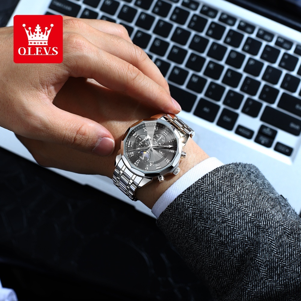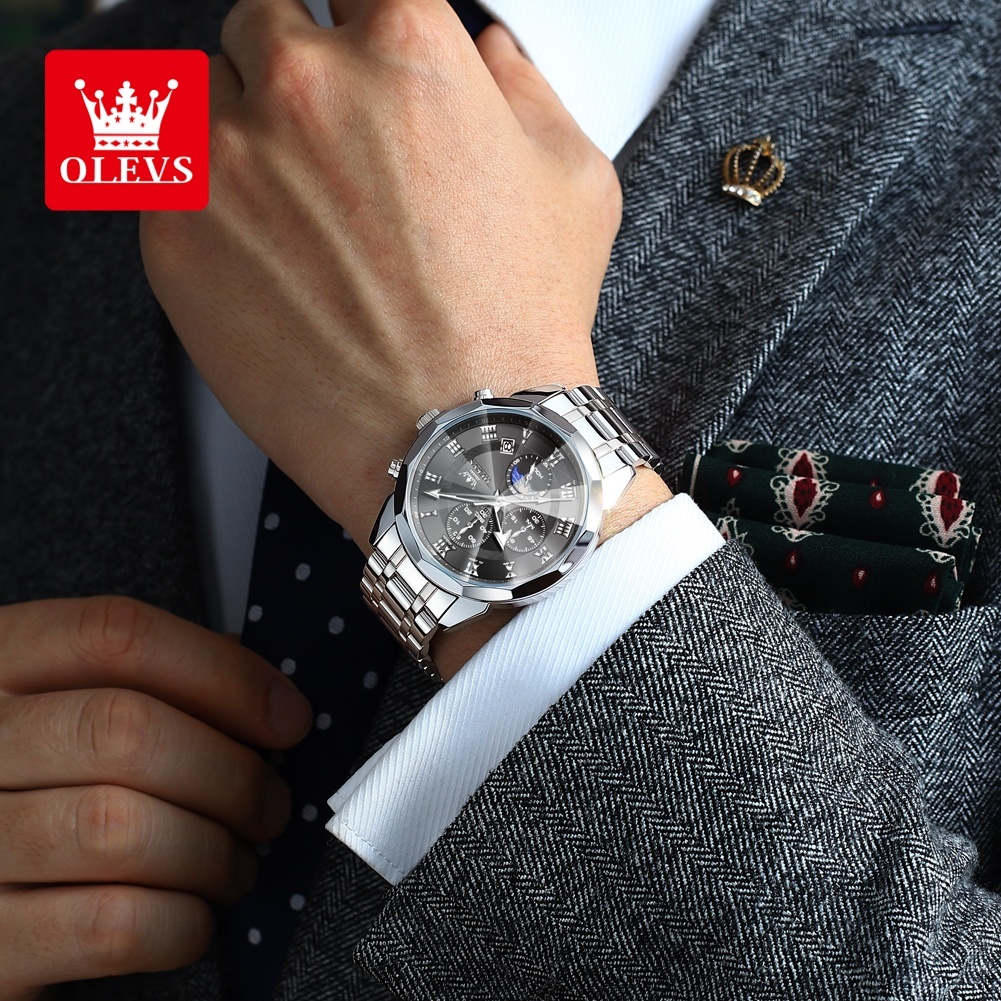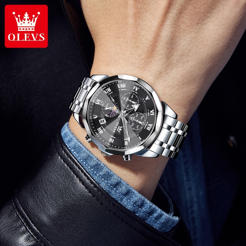 OLEVS Jam Tangan Pria Anti Air Original Bisnis Stainless Steel Watch Luminous Kalender Men Watchs 3675