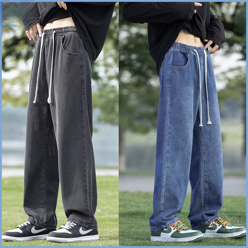 Celana Jeans Pria Gombrong Kulot tali Baggy Pants Cowok Oversize jumbo Korean Style Bahan Premium Tebal