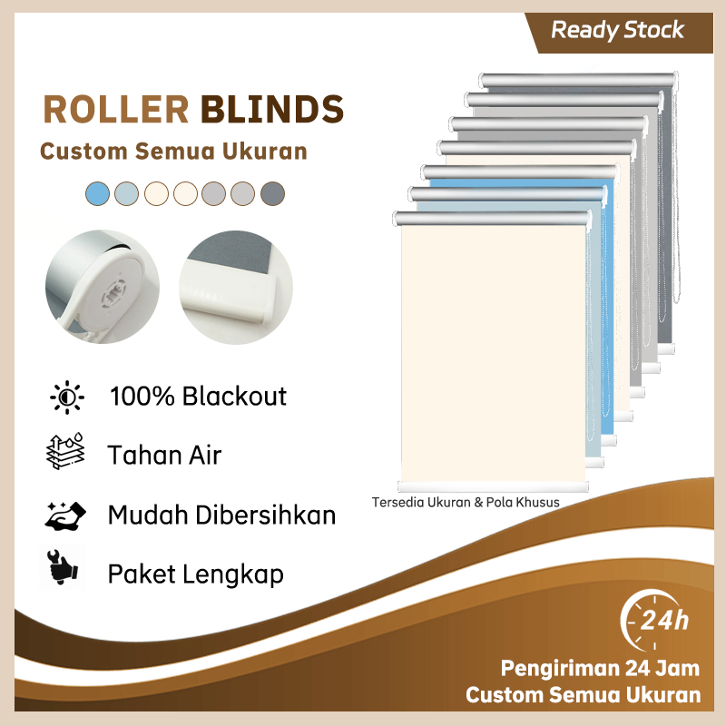 Roller Blind Warna Polos Terlaris Lengkap dengan Semua Aksesoris, Tahan Panas & Jaga Privasi, Mudah Dib