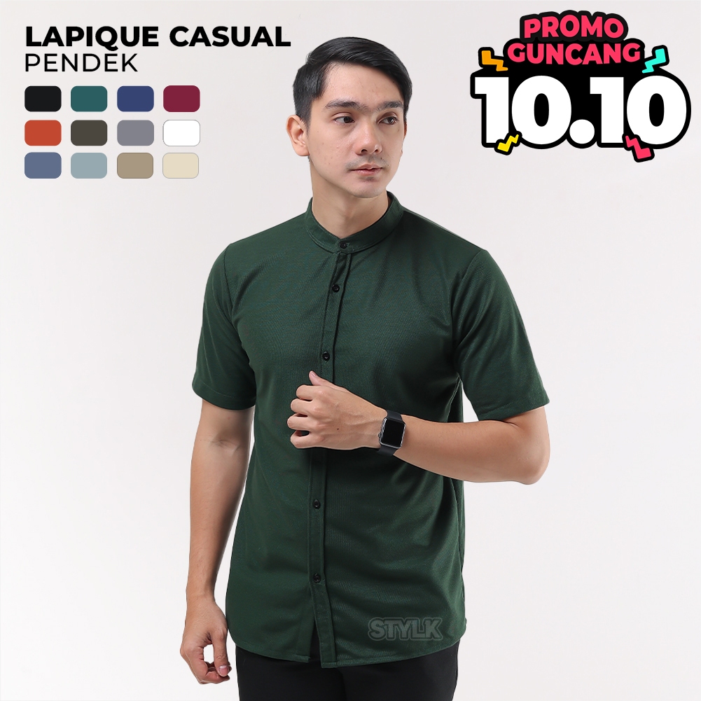 Stylelaki LAPIQUE - Kemeja Hijau Botol Pria Casual Lengan Pendek Slim Fit Anti Kusut Nyaman dan Lembut