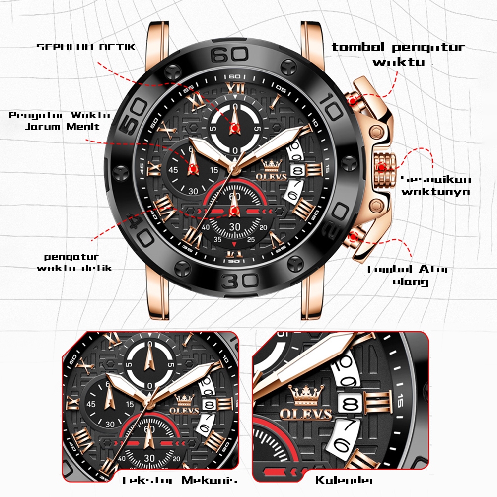 OLEVS Jam Tangan Pria Original Anti Air Tahan Sport Analog Digital Multifungsi Watch Men