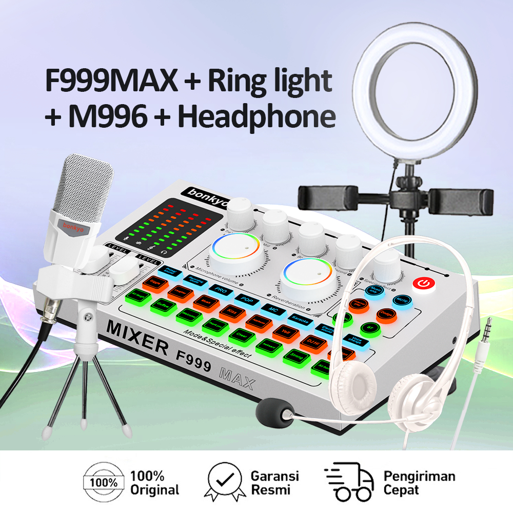 Bonkyo New upgraded metal material F999MAX+M996+Light+Headset Sound Card Bluetooth Live SoundCard F999MAX Soundcard Audi