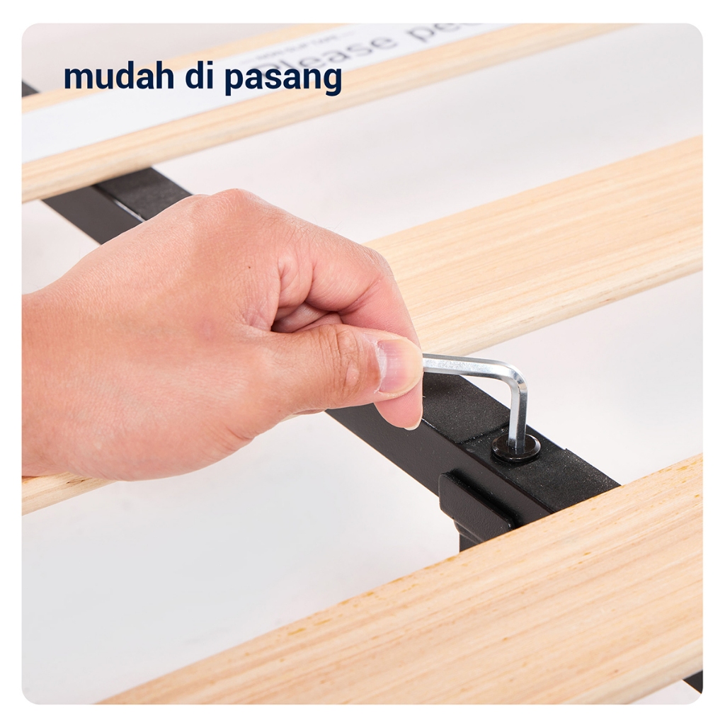 Avenco Classicbed Series Dipan Tempat Tidur Ranjang Besi dan Kayu Kokoh Anti Bising Retro Walnut Penyimpanan Bed
