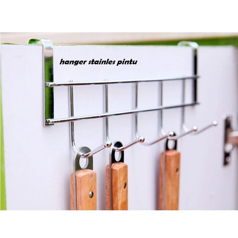 Hanger Stainless 5LUBANG UNTUK LEMARI PINTU DAPUR Hook Gantungan Baju Lap Alat Dapur Tanpa Paku