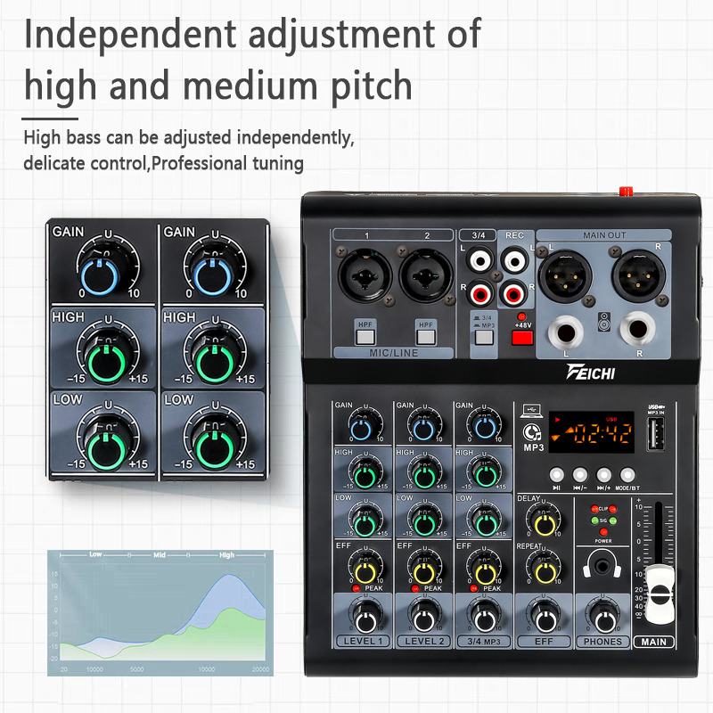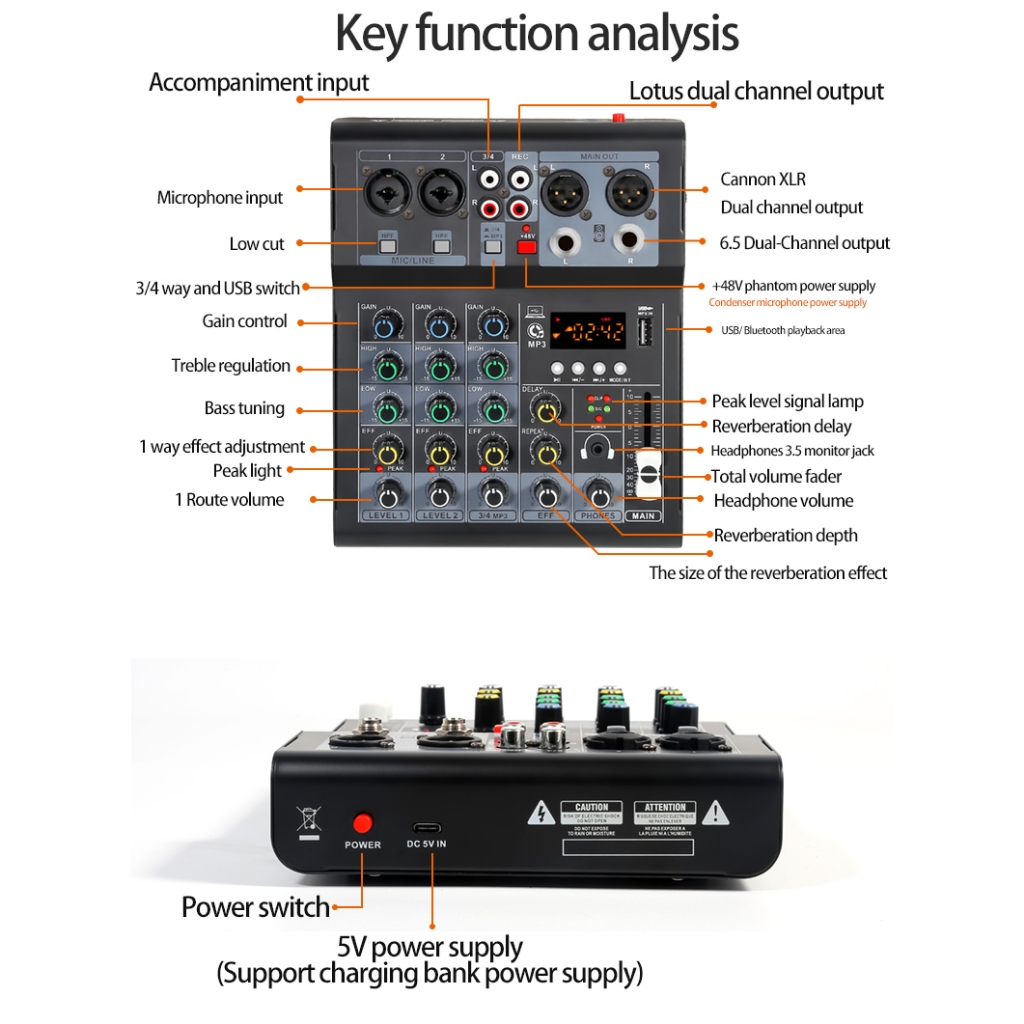 Professional Mixer Bluetooth 5.0 USB Input Audio Small Home Stage DC5V DJ sound mixer