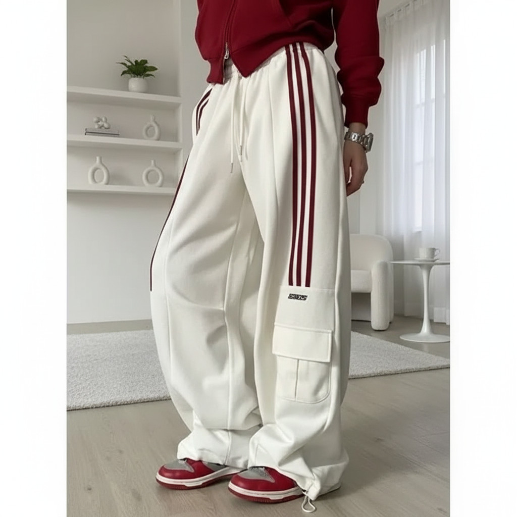 Vallina Outfit - Bonnie Cargo Celana Jogger Stripe Unisex Premium Matt Fleece Tebal OOTD Casual Daily
