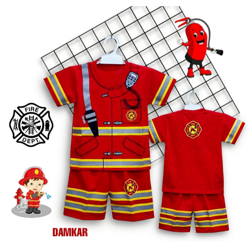 SETELAN ANAK DAMKAR KOSTUM DAPAT TOPI TERBARU USIA 1-10 TAHUN / BAJU DAMKAR ANAK-ANAK KOSTUM KEREN PROFESI DAMKAR PEMADAM 1 SAMPAI 10 TAHUN