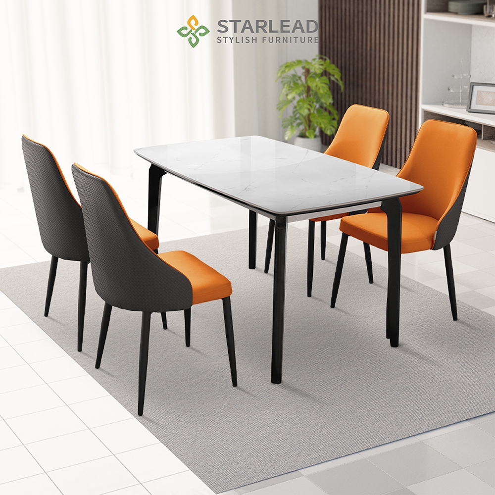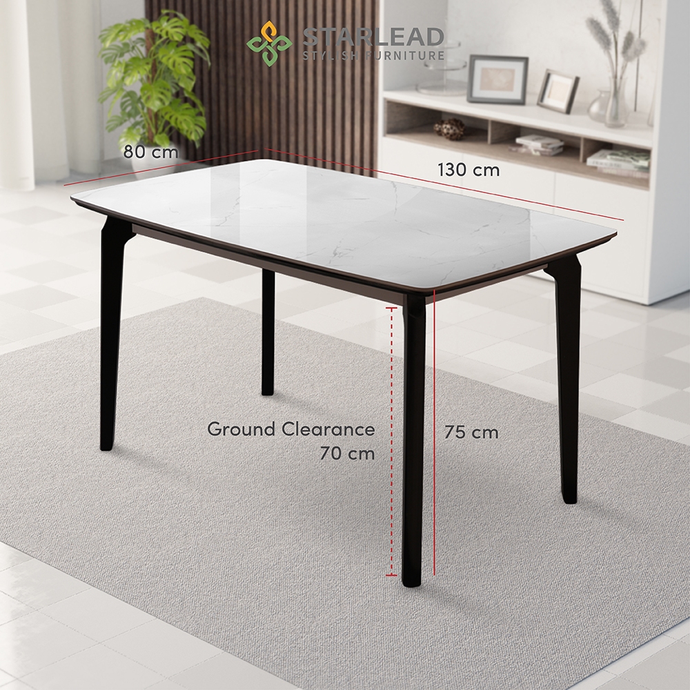 Starlead Set Meja Makan Batu Sinter / Meja Makan Kaki Kayu / Sintered Stone Dining Table - Carrara White / Callacata Gre