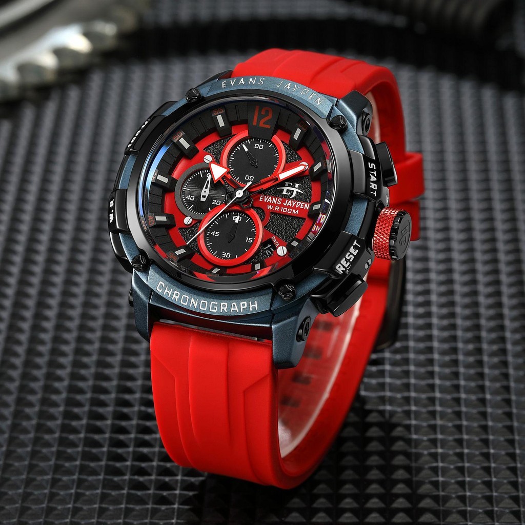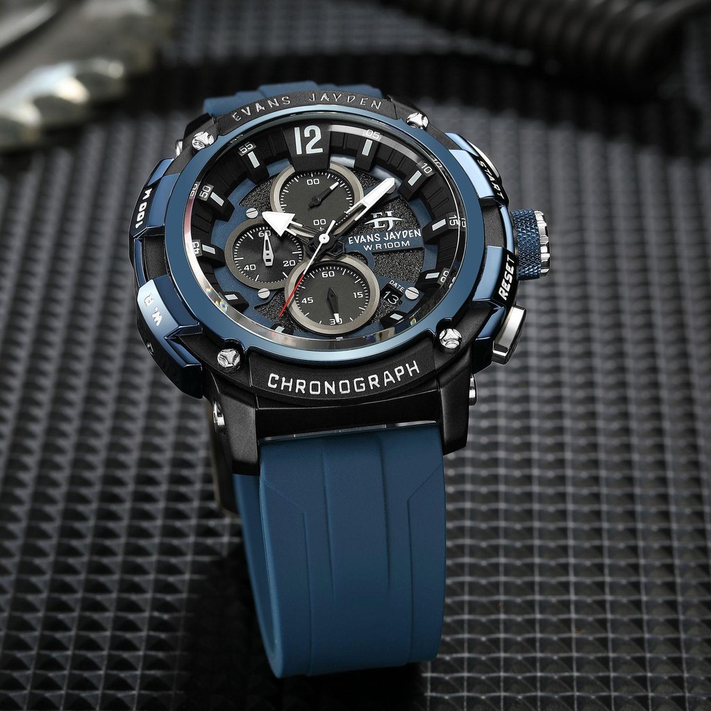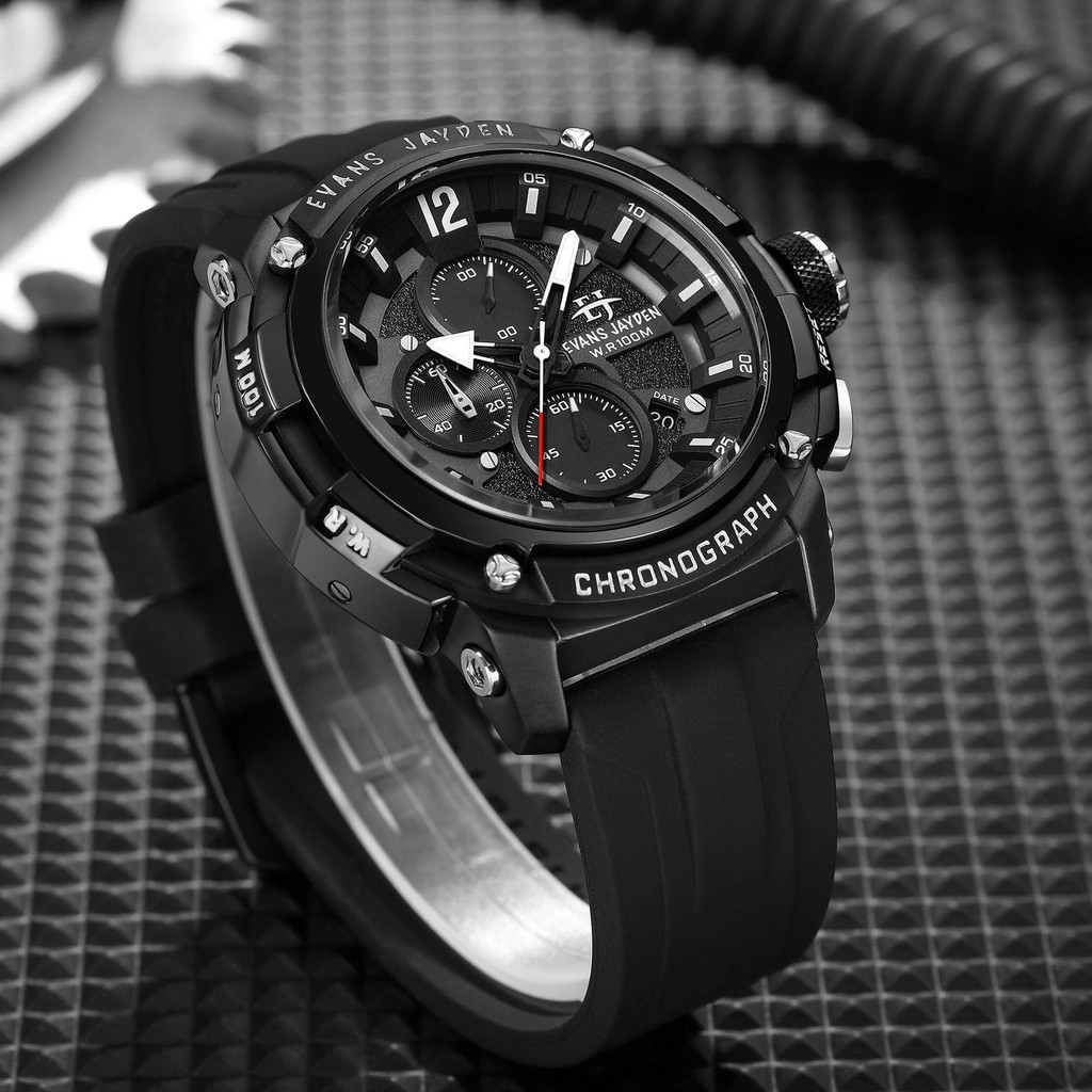 Jam Tangan Pria Evans Jayden 9617 Rubber Silicon Kaca Sapphire Chronograph Water Resistant 5ATM