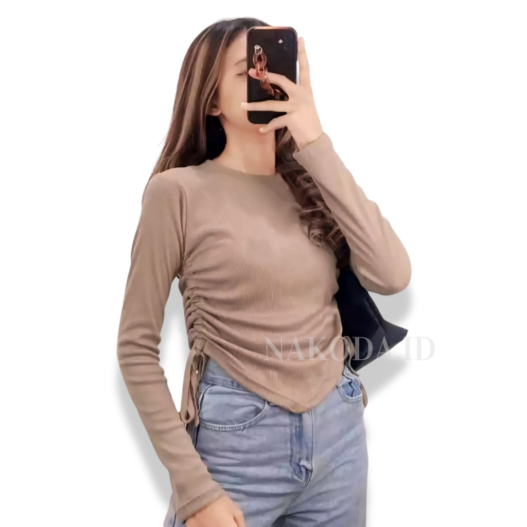 Valen Top Crop Blouse S M L XL Atasan Wanita Knit Kaos Terbaru Blus Rib Polos Kekinian Viral