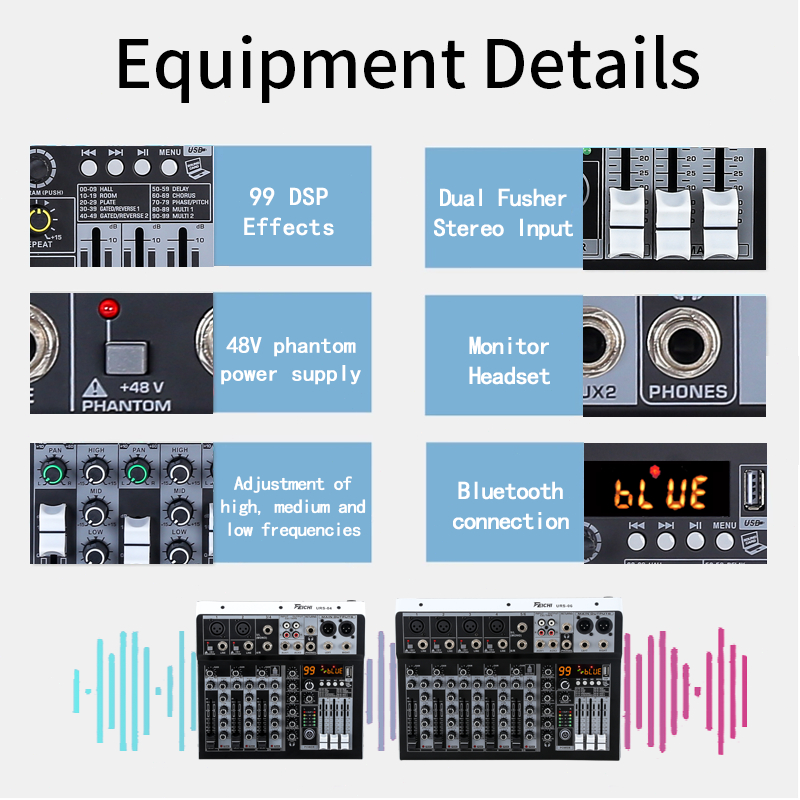 Professional Audio Mixer Input Mixer Power Supply Outdoor Home KTV 4Channel 6 Channel Mixer