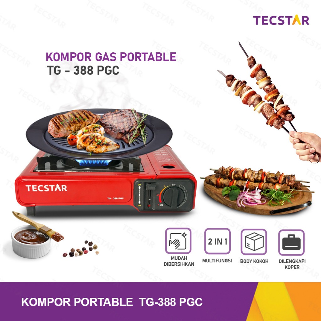 Tecstar Kompor Portable 2In1 Gas Tabung & Kaleng 1 Tungku + Koper Tg-388 Pgc Putih
