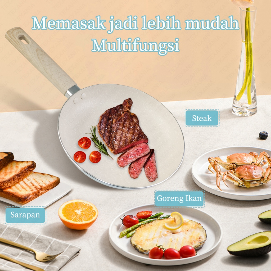 Texania Set Peralatan Masak Wajan Penggorengan 2 Pcs,Sauce Pan 16Cm & Frypan 18Cm Bahan Alumunium Panci Mie,Granit Coati