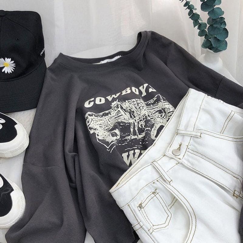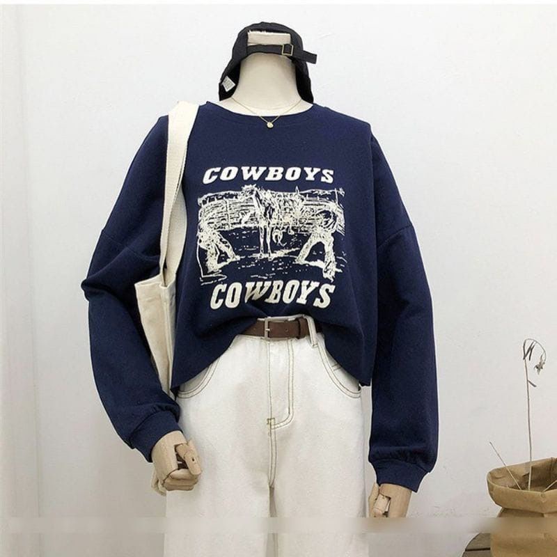 SWEATER COWBOYS WANITA CROPE CREWNECK OVERSIZE