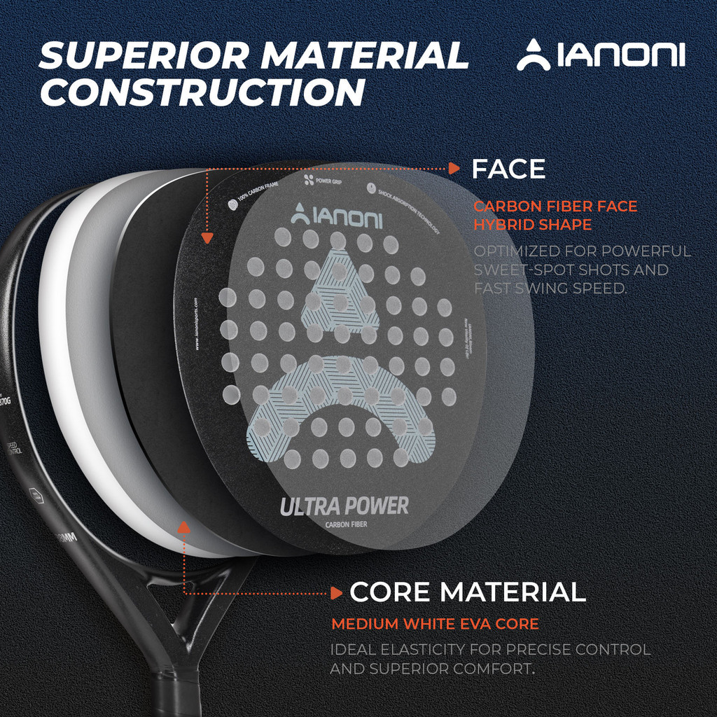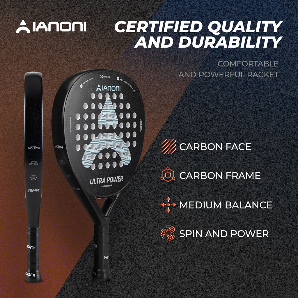IANONI Ultra Power Black – Raket Padel Carbon Fiber Surface Kasar, Kekuatan Maksimal