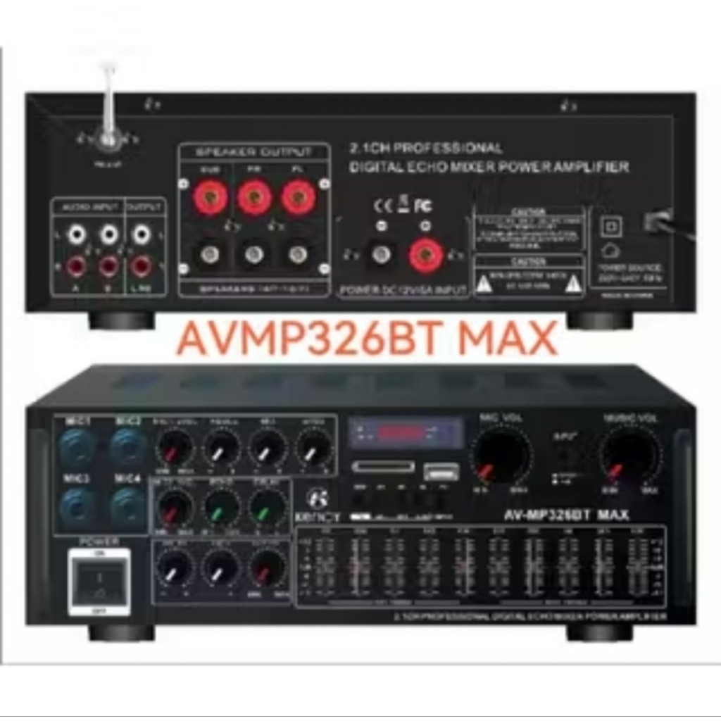 Amplifier karaoke Home Theater AV 326BT MAX Amplifier Bluetooth 5.2 Audio AV-326BT MAX Channel 2.1 Full Bas Subwoofer