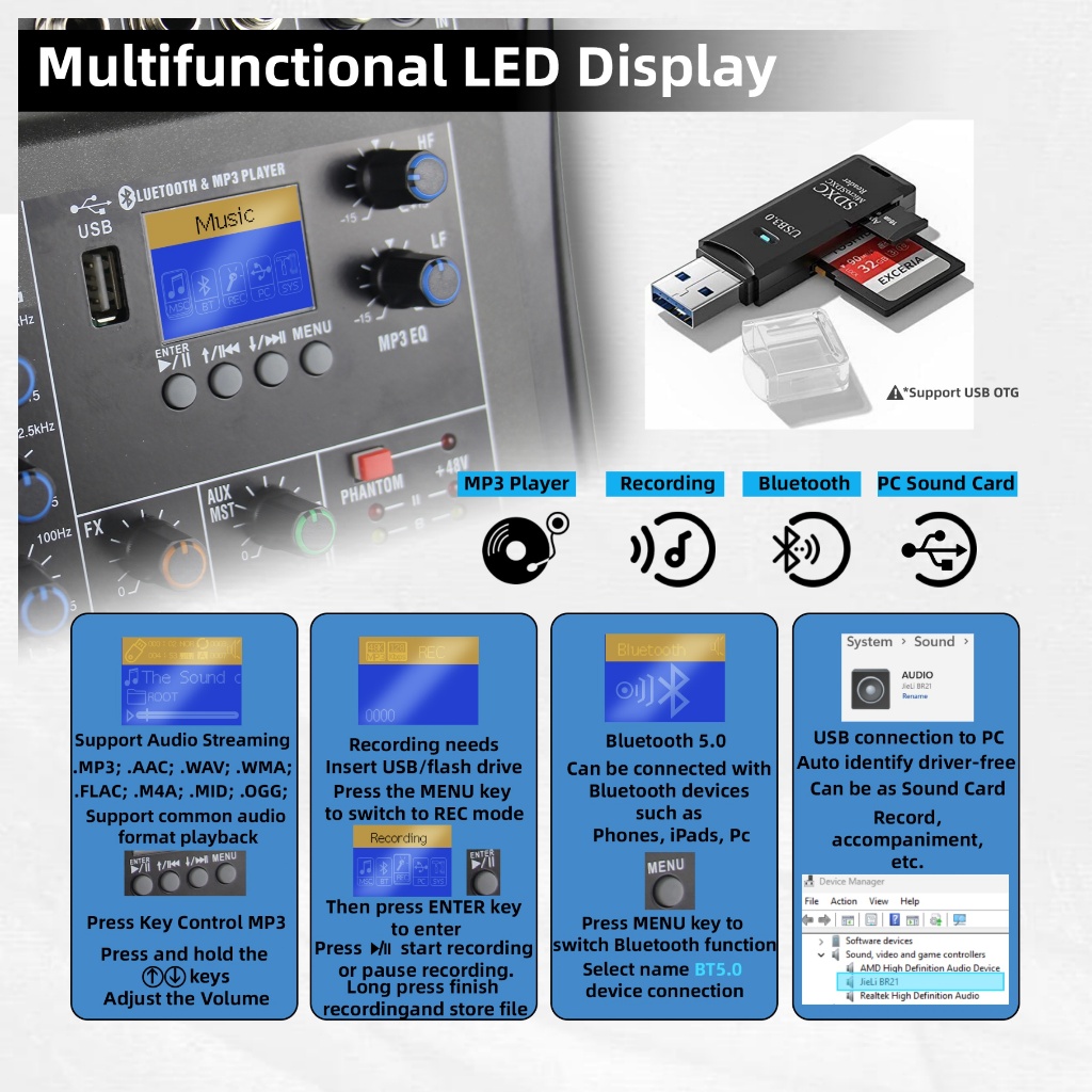 MOREFAND AUDIO MIXER CT6/CT8/CT12 SBLUETOOTH,USB,RECORD,SOUND CARDREVERB Mixer audio saluran