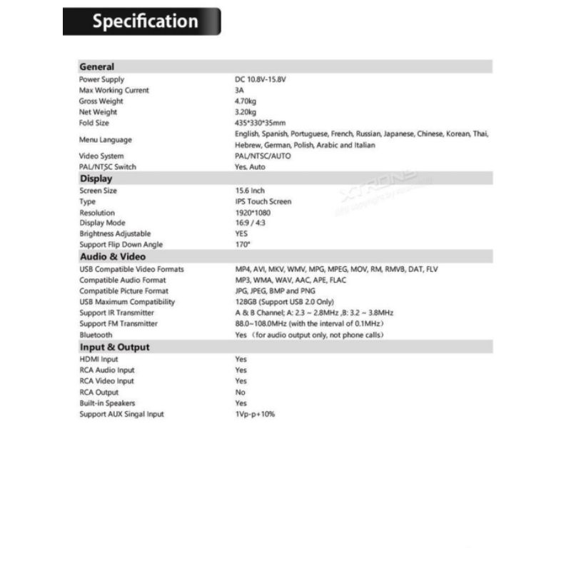 Tv plafon / Roof 15.6" IPS SCREEN FULL HD 1080P. USB, MMC, HDMI & Speaker