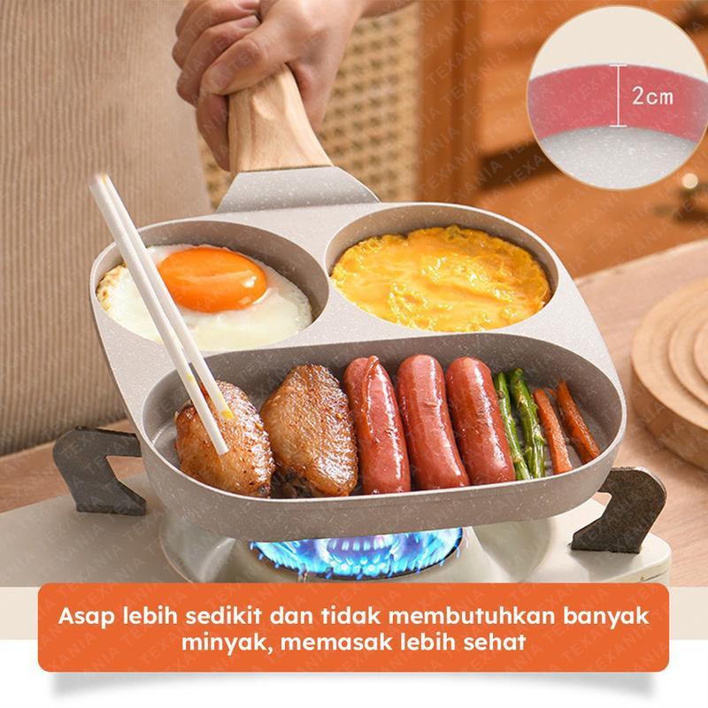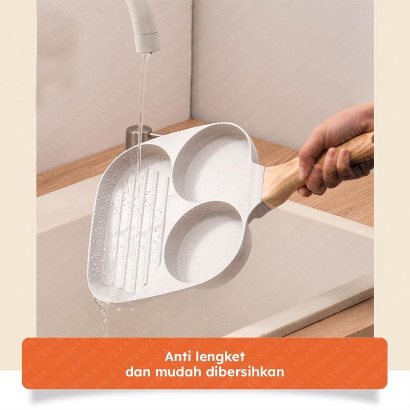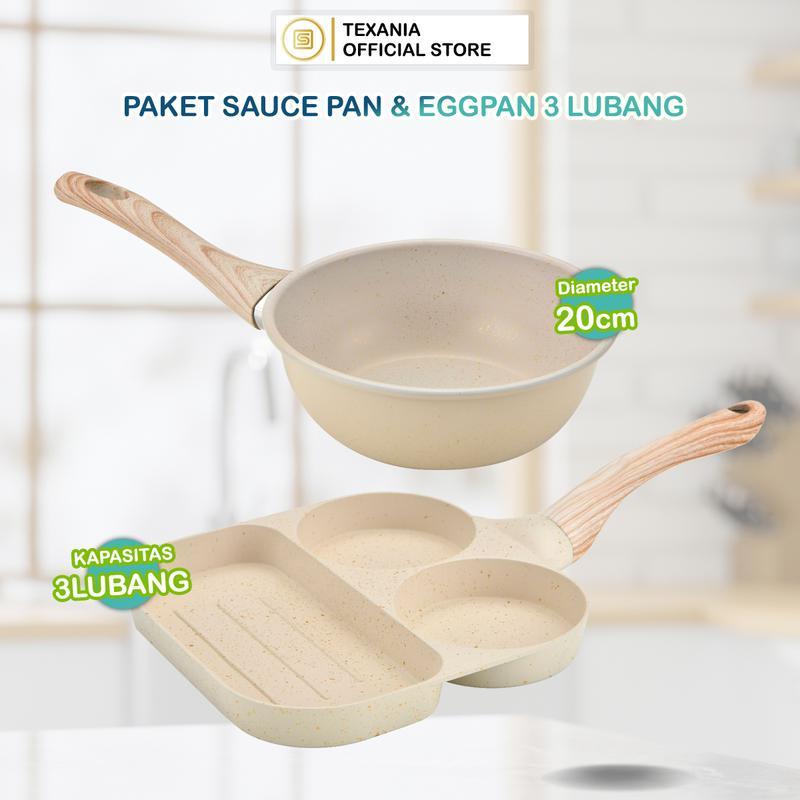 Texania Set Saucepan 20Cm + Eggpan 3 Lubang Cream Aluminium Aloy Kitchenware
