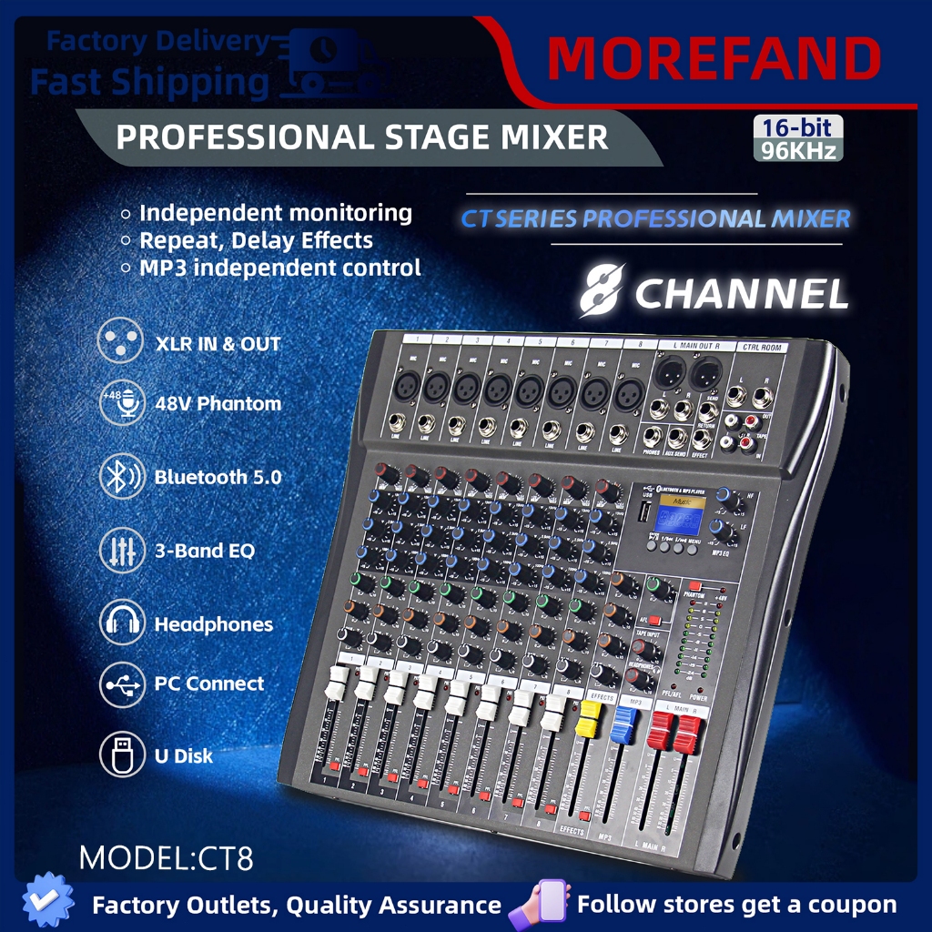 MOREFAND Professional Mixer Aduio CT6/CT8/CT12 Mixer 6/8/12-Channel USB/Electro Bluetooth USB MP3 Soundcard USB mikser a