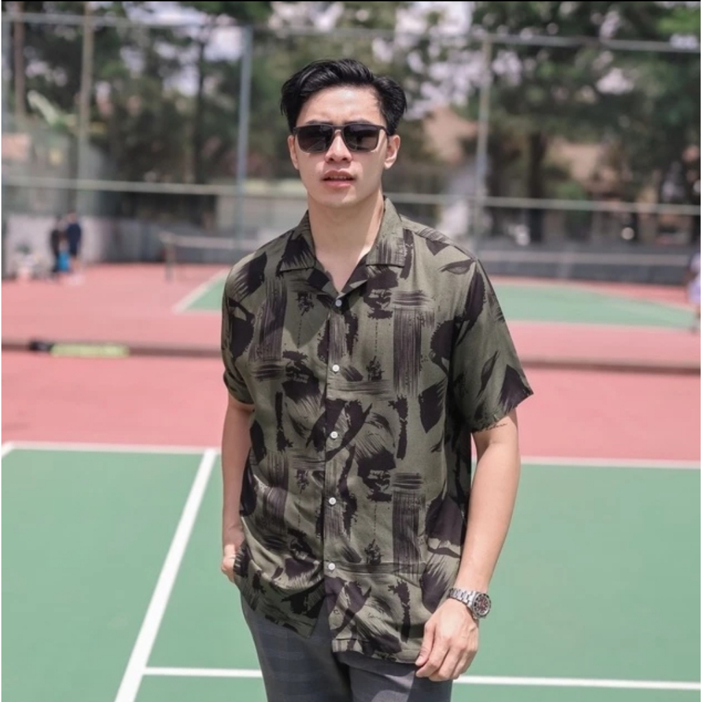 MUST Kemeja Hawai Pria Wanita Motif Printing Abstrak Vintage Casual Shirt Lengan Pendek Retro
