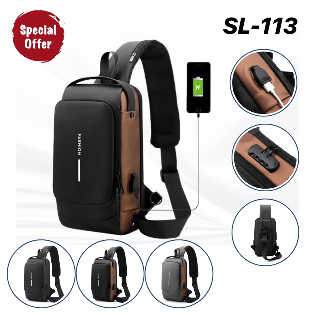 Tas Selempang Pria Anti Maling USB Charger – Sling Bag Waterproof dengan Slot Kunci & Kompartemen Multifungsi | Tas Dada